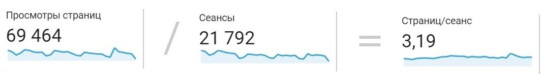 Глубина просмотра в Google Analytics рассчитывается как показатель «Страниц/сеанс» — это как раз расчет по формуле сеансы/просмотры. Найти глубину просмотра можно в сводке или разделе «Аудитория» — «Обзор».