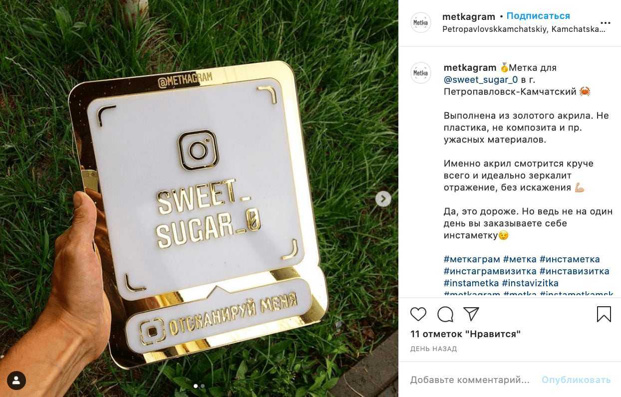 Раньше, чтобы сообщить клиентам о том, что вы есть в Инстаграме, вы развешивали таблички, где рядом с лого Инстаграма было написано имя профиля. Их нужно заменить, на созданный Nametags. Чтобы, когда люди заходят к вам в магазин, кафе или офис, могли отсканировать его и быстро посмотреть ваш Инстаграм. .