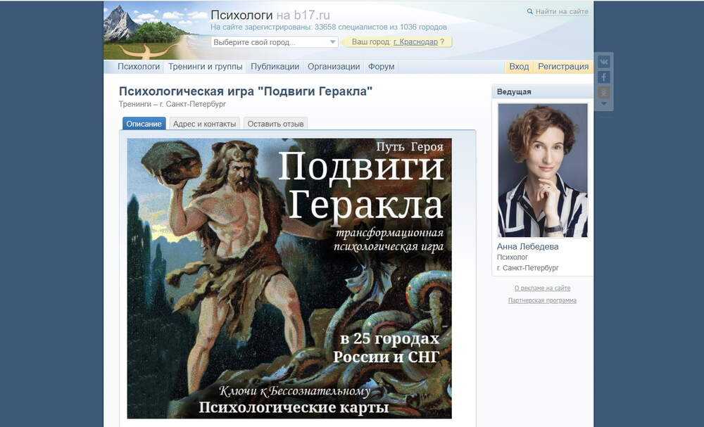 размещение анонсов на специализированных сайтах (b17.ru, samopoznanie.ru, VseTreningi.ru, timepad.ru) — возможность дополнительно привлечь и проинформировать аудиторию тех, кто любит ходить на тренинги).