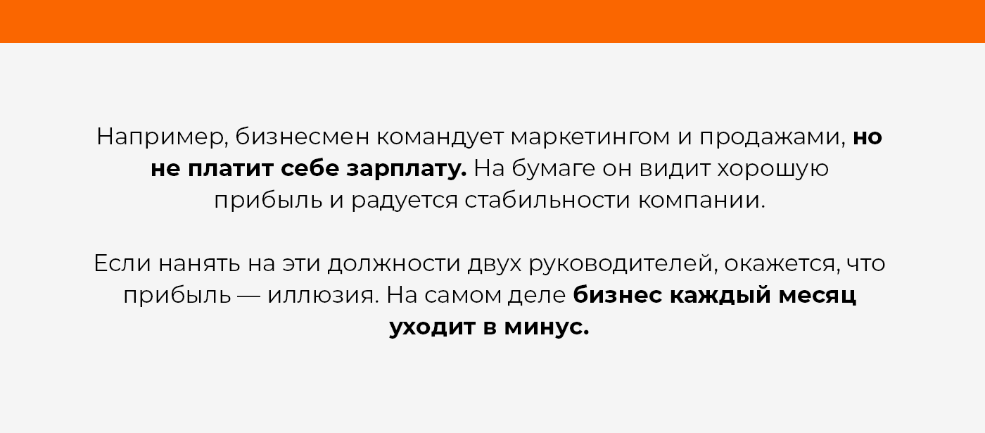 Платить собственнику зарплату специалиста, роль которого он выполняет, необходимо. Да, собственник должен покрыть свои затраты времени и сил, но дело не только в этом. Гораздо важнее отнести эту сумму на расходы, чтобы исключить появление мнимой прибыли.