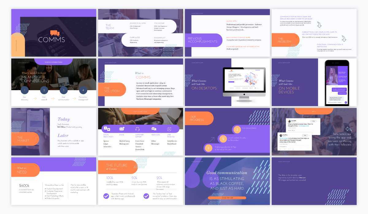 В этом шаблоне продающей презентации 16 слайдов, оформленных в одинаковом стиле. Выберите слайды, которые лучше всего подойдут для вашей презентации, и создайте нужное количество копий. Такой шаблон отлично подойдет для презентации цифрового продукта или услуги.