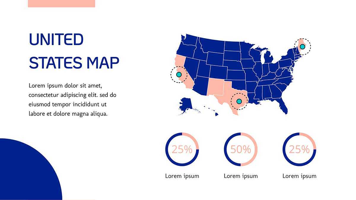 Если у вас есть филиалы, включите в презентацию интерактивную карту и отметьте их на ней. Можно добавить карту региона, штата или страны. Ввести данные можно с помощью таблицы Google или вручную.