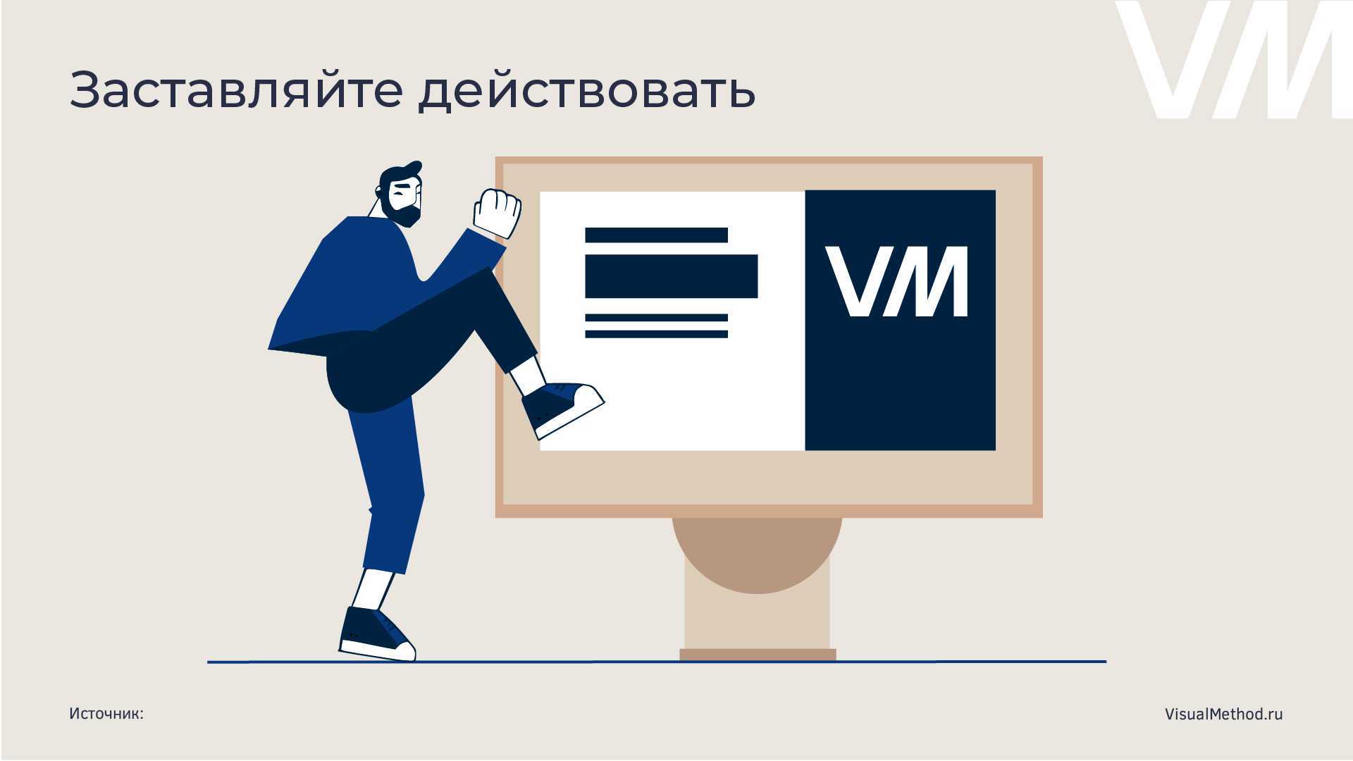 Часто бывает, что презентация закончилась, а аудитория не знает, что делать дальше. Даже самую удачную колоду слайдов следует закрепить четким призывом к действию