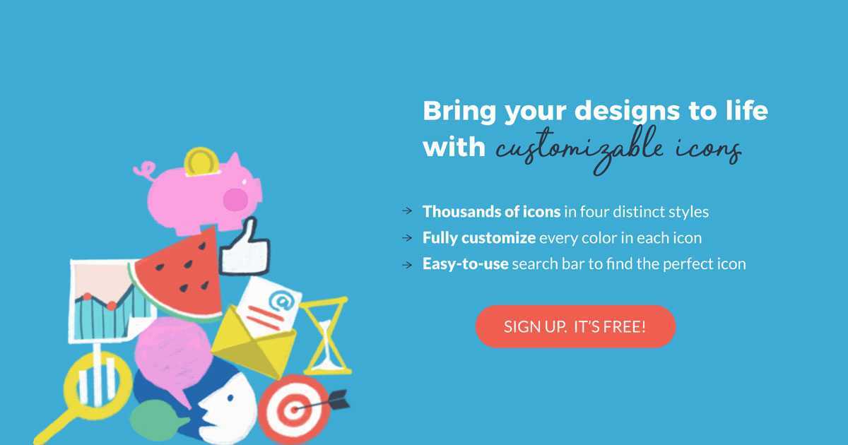 Все фотографии, значки и иллюстрации, которые есть в шаблонах, можно использовать бесплатно. Множество бесплатных элементов есть и в графической библиотеке Visme. Чтобы найти конкретный элемент, воспользуйтесь функцией поиска. Все значки и иллюстрации можно настраивать и применять к ним цвета вашего бренда.