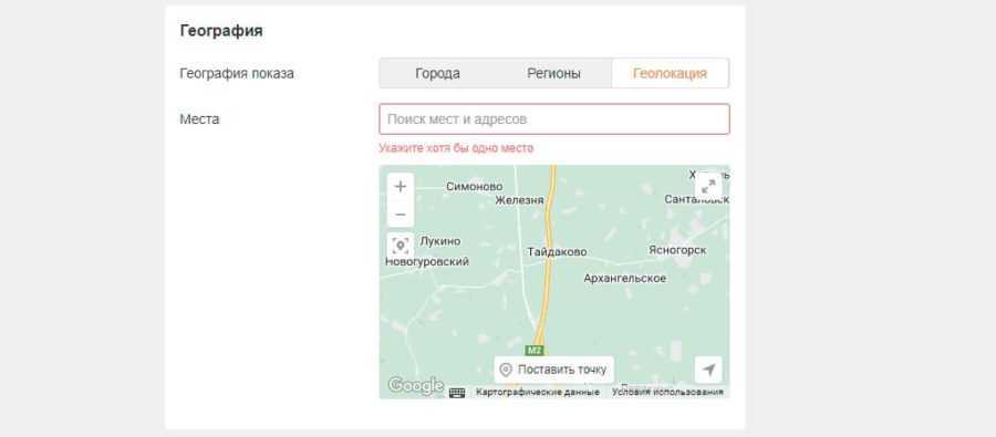 Город, район, улица или выделенная на карте область – чем точнее информация о расположении потенциальных покупателей, тем больше шансов сэкономить бюджет и отсеять лишнюю аудиторию.
