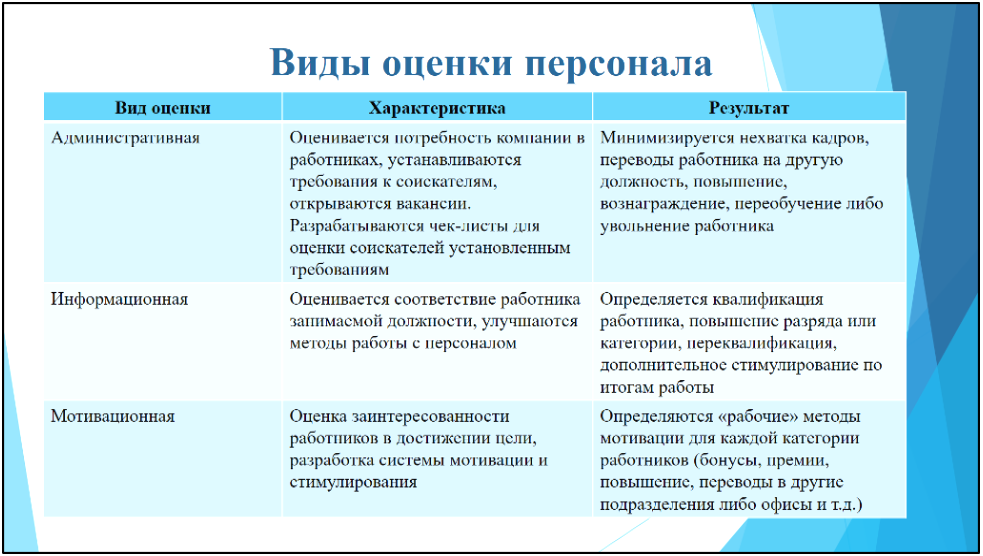- Определение потребности в персонале. Оценка качества работы, корпоративного поведения с учетом достигнутых результатов сотрудников помогает определить, имеется ли необходимость в новых кадрах или можно обойтись кадровыми ротациями в существующем коллективе.