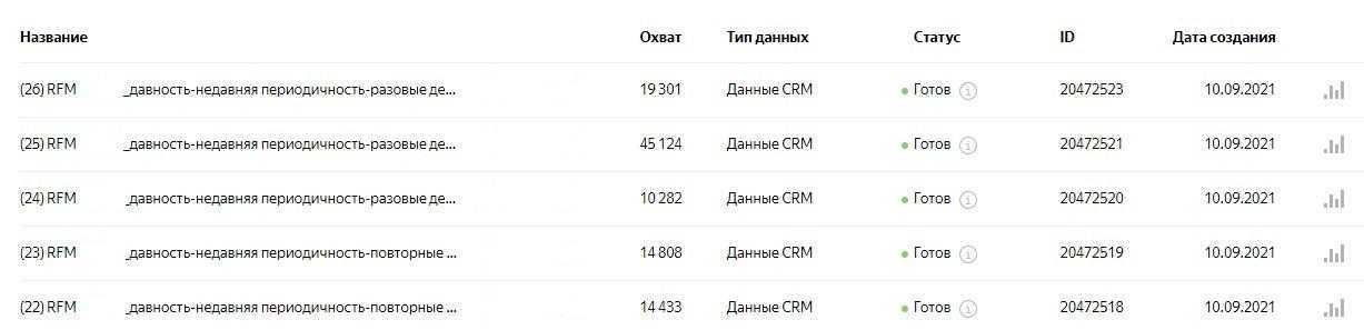 Создаем файлы с нужными нам сегментами и загружаем в сервис Яндекс.Аудитории.