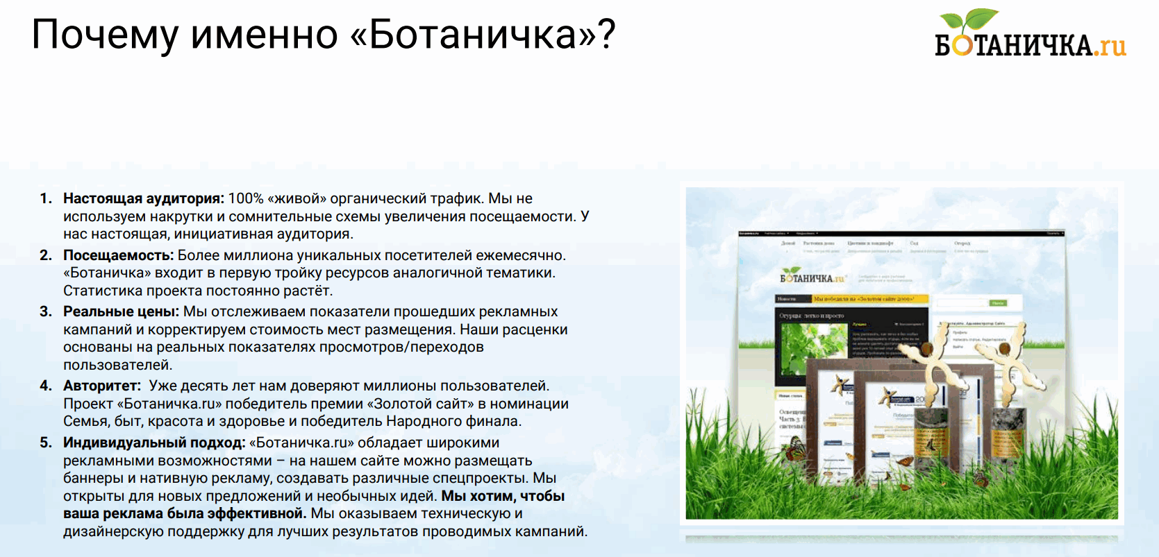 Медиакит “Ботанички”. Этот слайд можно сократить до 2 предложений