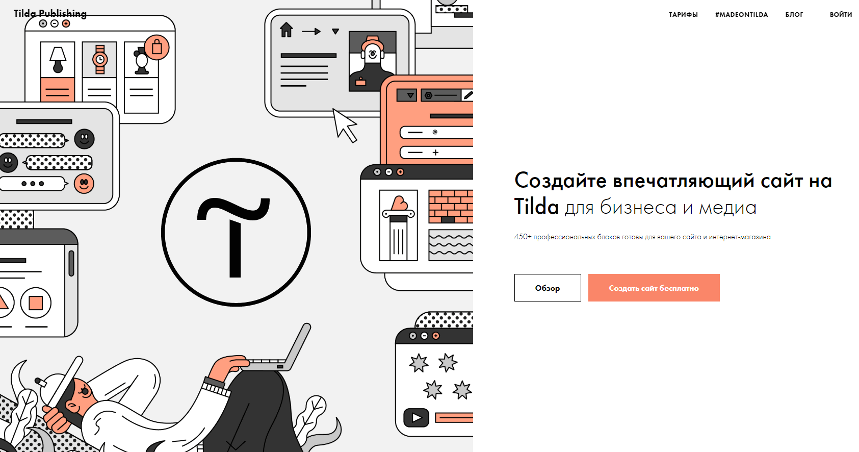 Конструктор лендингов позволит создать онлайн-версию привлекательного медиакита. В нем много блоков и шаблонов, и можно обойтись без привлечения верстальщика и дизайнера. В функционале придется покопаться, но результат того стоит.