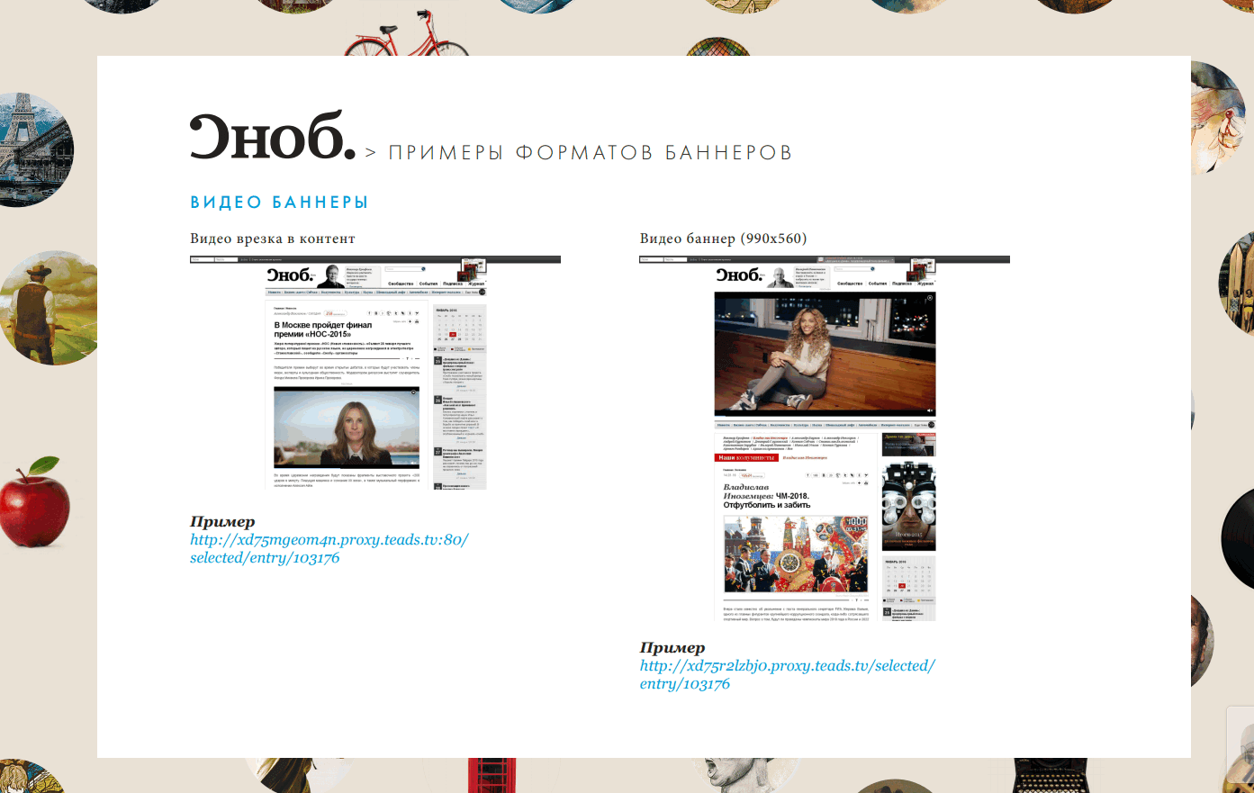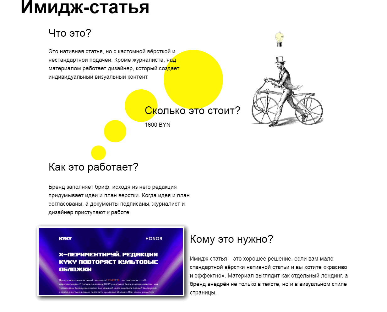 Примеры опубликованных статей (кейсов) можно вынести в предыдущий блок или же отдельно. Сюда можно поместить скриншот баннера или статьи (вместе со ссылкой на нее)