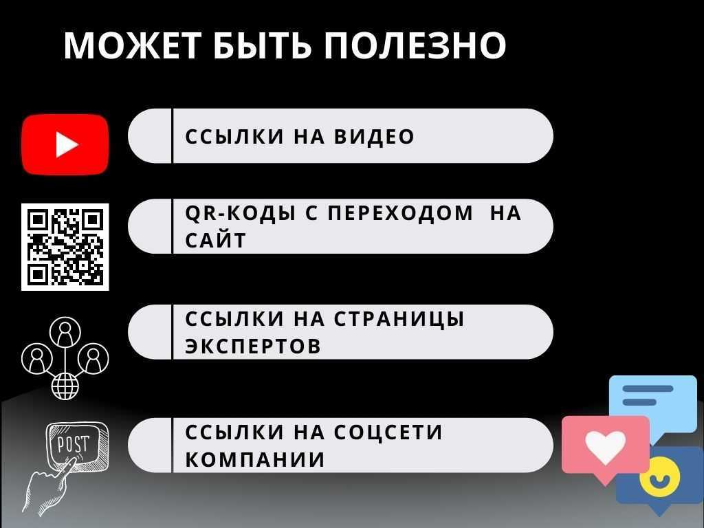 Современные технологии позволяют использовать в пресс-ките дополненную реальность: QR-коды, “оживлялки” и ссылки на компанию для облегчения поиска соцсетей или ссылки на фотобанк. Элемент дополненной реальности может стать еще одной изюминкой стильного пресс-кита компании, однако не стоит его перегружать, т. к. здравый смысл — залог качественного продукта.