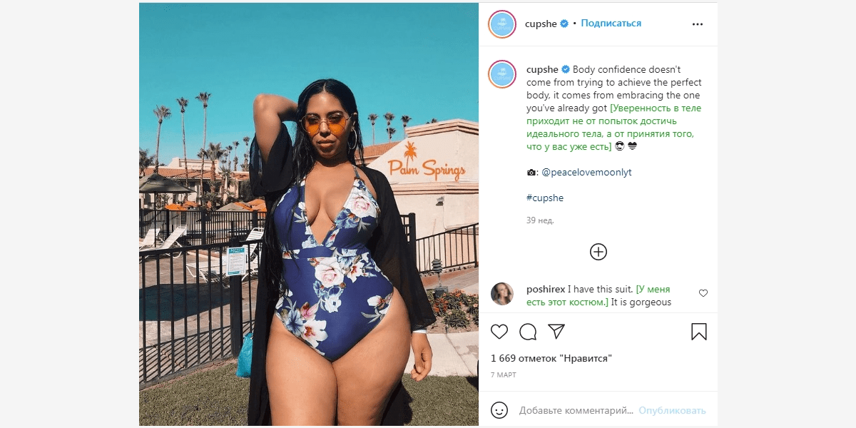 Например. Онлайн-магазин купальников Cupshe прибегает к пользовательскому контенту, чтобы демонстрировать своим клиентам разные стили и размеры. Они отмечают исходную учетную запись, когда делятся фотографией пользователя в одном из своих купальных костюмов.