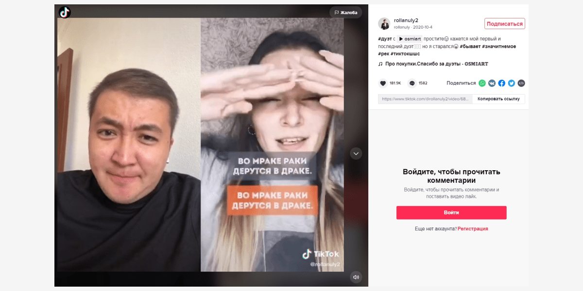Дуэты в ТикТоке позволяют, опираясь на видео другого пользователя, записать собственный ролик вместе с оригиналом.