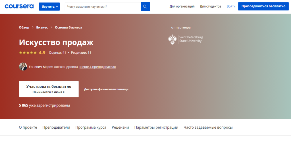 «Искусство продаж» от СПбГУ
