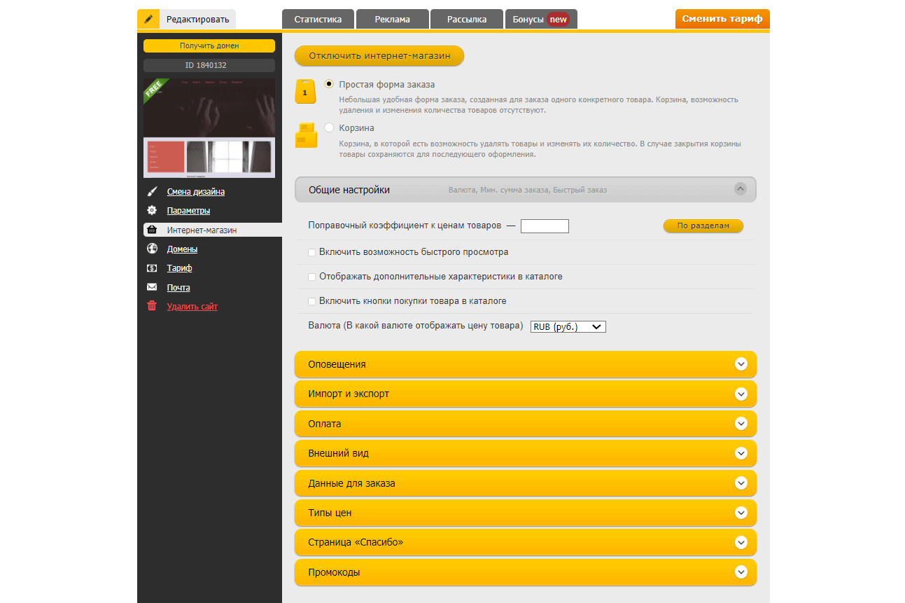 - Для нормальной работы нужен хостинг и домен, родной хостинг системы позволяет публиковать страницы на поддоменах, что не подходит для серьёзной работы;