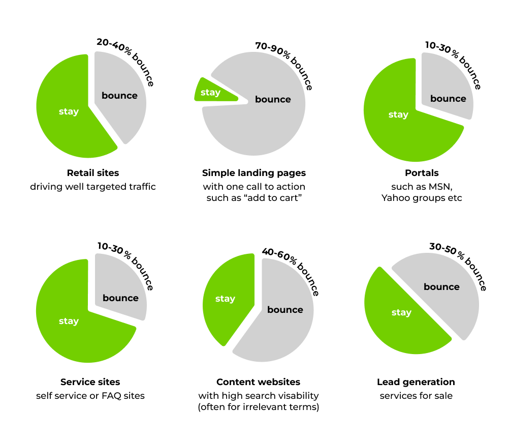 По мнению Нейла Пателя, мультимиллионера и одного из самых известных онлайн-маркетологов в мире, в Google Analytics средний уровень Bounce Rate для одностраничных сайтов равен примерно 70–90%. А вот для порталов, интернет магазинов и сайтов услуг — 10–40%.