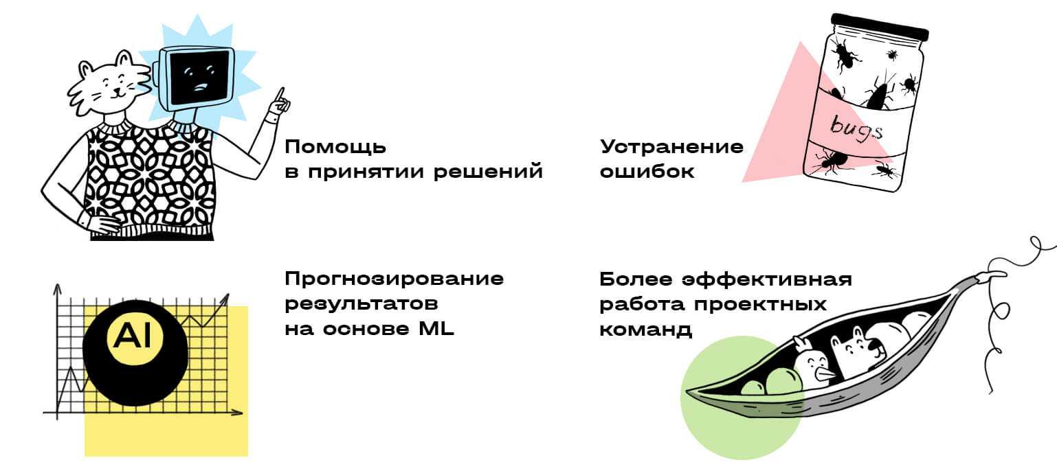 На основе статистических данных и технологии машинного обучения (ML) ИИ может не только давать рекомендации, но и предсказывать успешность проектов.