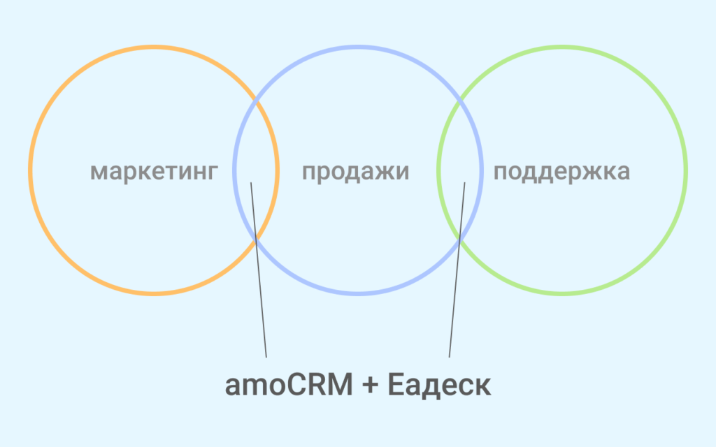 Полноценно реализовать омниканальность в маркетинге, продажах и поддержки можно с помощью интеграции всего двух инструментов — Еадеск и amoCRM. Менеджеры в CRM будут видеть все обращения клиентов в поддержку, и наоборот, специалистам поддержки будут доступны данные о сделках клиентов.