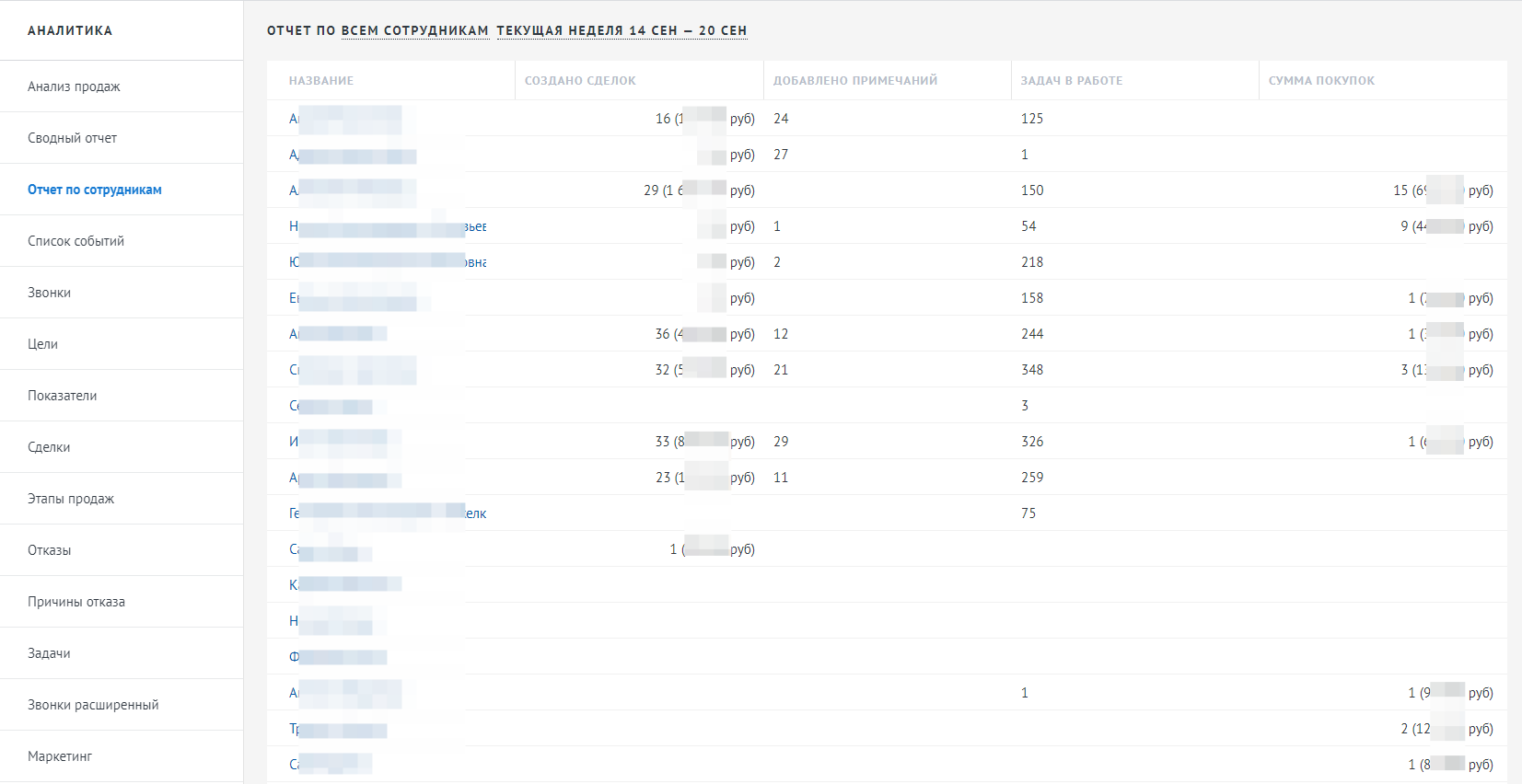 - контроль за работой менеджеров. CRM соберет отчеты о количестве звонков, результатах переговоров и скорости обработки заявок.