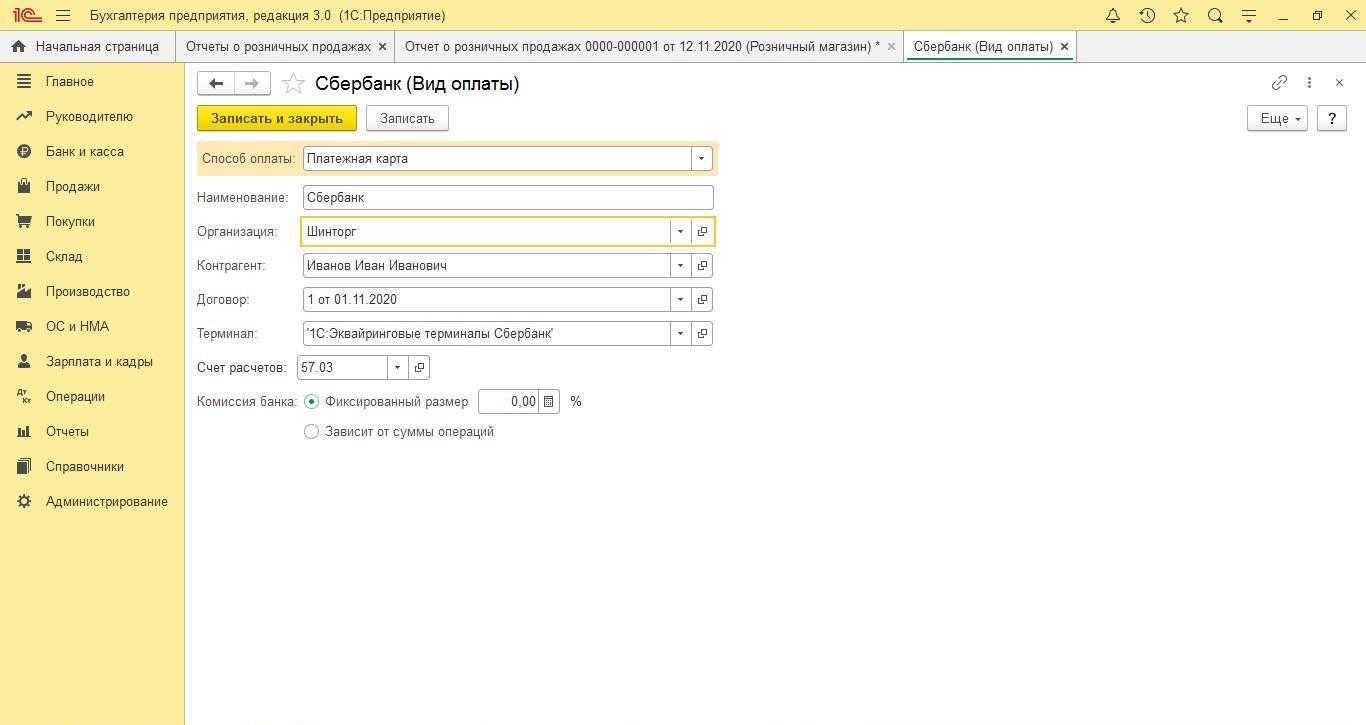 Пошаговый алгоритм, как заполнить отчет о розничных продажах в 1С 8.3 по платежным картам: