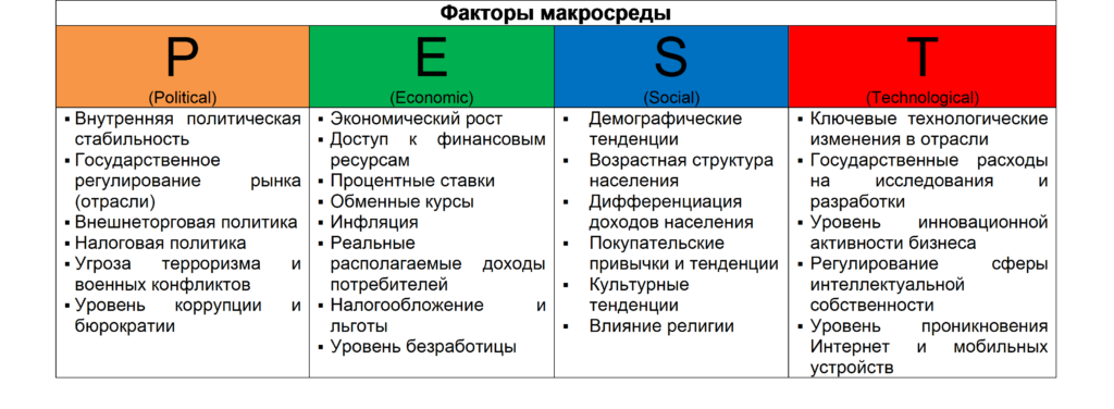 Чтобы как можно более объективно оценить внешние угрозы, положение и возможности развития, был придуман PEST-анализ.