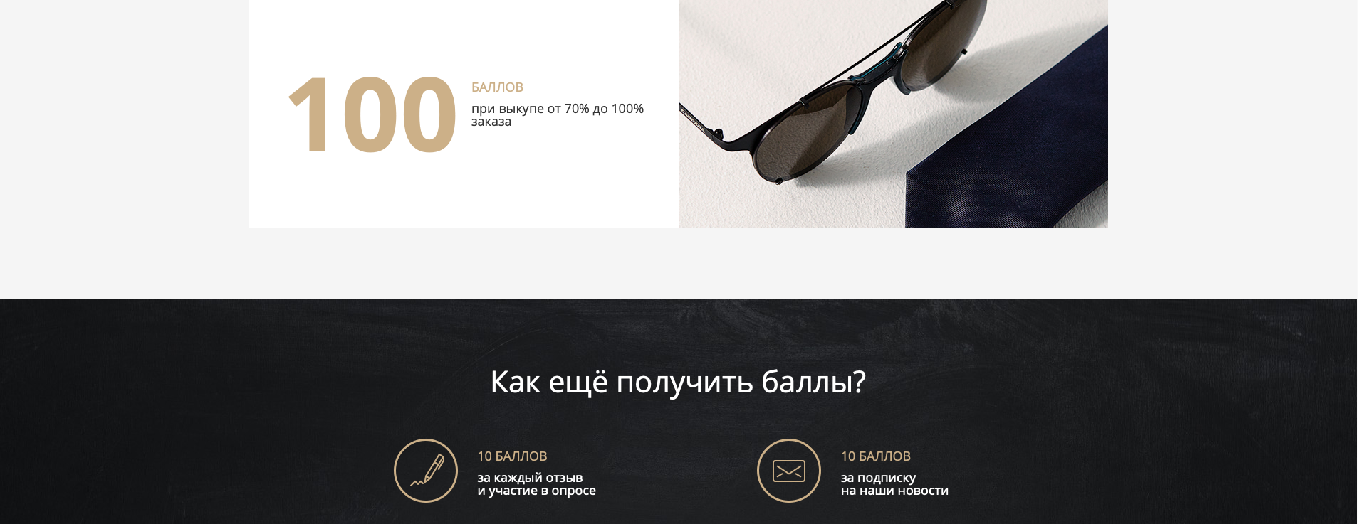 Чем больше баллов набираешь, тем выше скидка на следующие покупки. Клиенты получают баллы не только за покупки: можно подписаться на рассылку, пройти опрос, оставить отзыв.