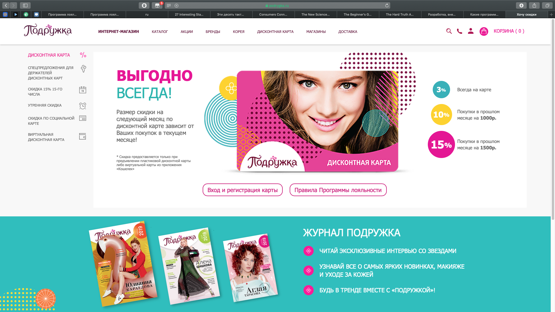 Еще одна финансовая программа. Чем больше покупаешь, тем выше скидка по карте «Подружки» на следующий месяц. В конце месяца она сгорает.