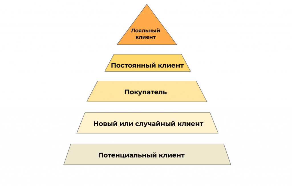Клиент не может стать лояльным после первой покупки, ему нужно время, чтобы с вами познакомиться. Есть несколько этапов лояльности клиентов, и работа с каждой группой покупателей будет отличаться.