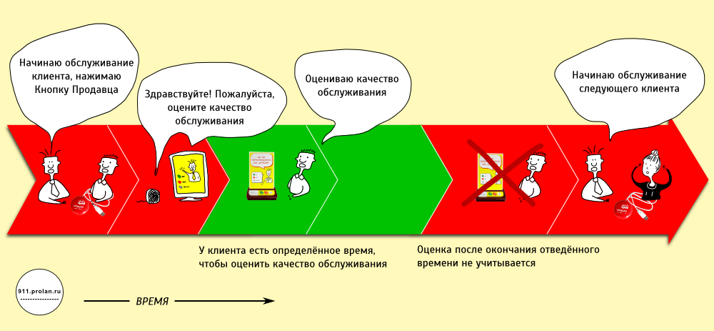 1. Работник передней линии, заканчивая обслуживание клиента, просит его ответить на Ключевой Вопрос и одновременно делает короткое нажатие Кнопки Продавца. Должны соблюдаться следующие условия: