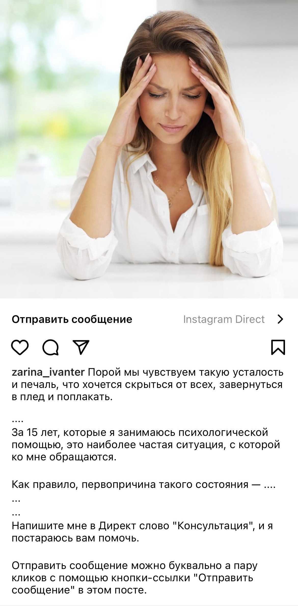 Пишем в рекламе: «Чтобы получить бесплатную консультацию по самооценке, напишите в Директ слово Консультация».