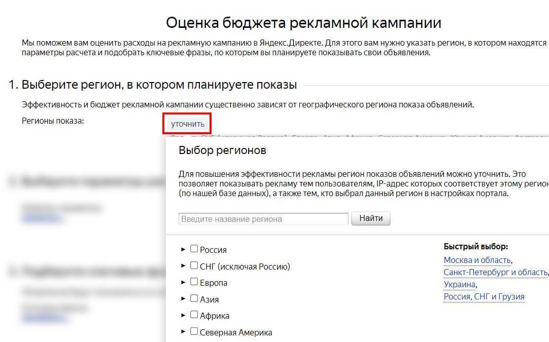 А) для оценки бюджета в яндекс директ.