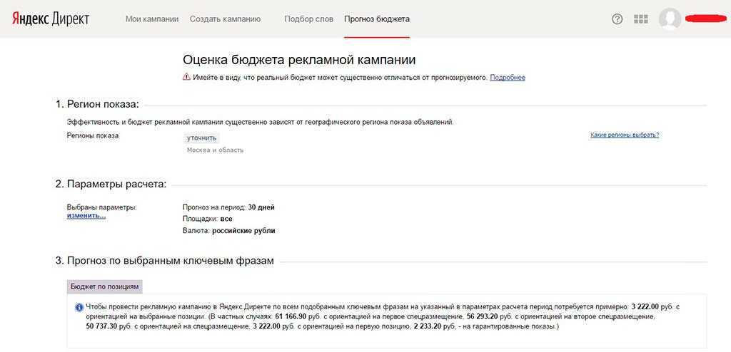 Прогноз бюджета Яндекс Директ онлайн