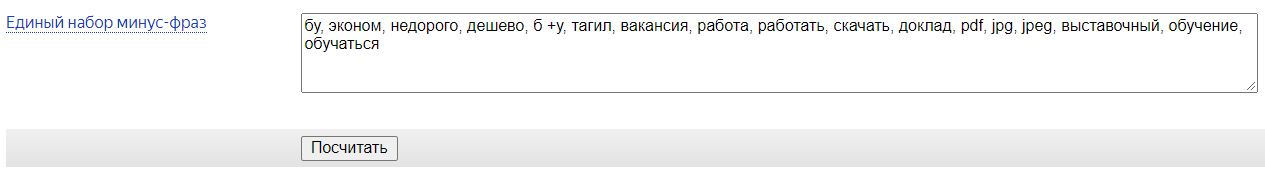 Ниже добавляем минус-слова и минус-фразы.