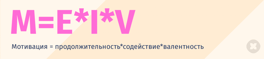- V (валентность) – воспринимаемая сила вознаграждения, которое будет результатом исполнения. Если награда невелика, мотивация будет небольшой, даже если продолжительность и содействие будут высокими.