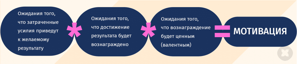 Проще говоря, достигнутые результаты зависят от того, сколько усилий человек готов приложить. А готовность эта формируется на основе понимания, какое вознаграждение впоследствии он получит. И чем больше оно для него желаемо, соответственно, тем быстрее он начнёт активную деятельность. И тем меньше будет попыток устроить перерыв, саботировать процесс или вообще, избежать его, переложив обязанности на другого сотрудника.