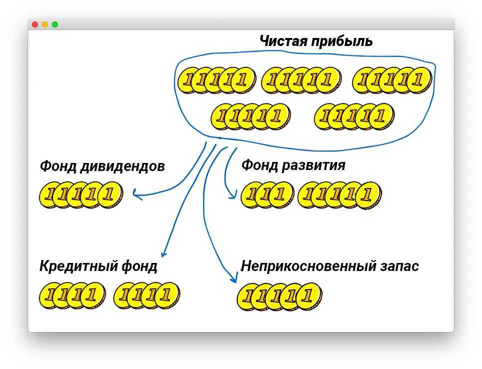 Чтобы начать откладывать на будущее, компании стоит завести фонды — отдельные расчётные счета, на которые компания откладывает процент от чистой прибыли на разные цели. Схематично фонды можно представить так: