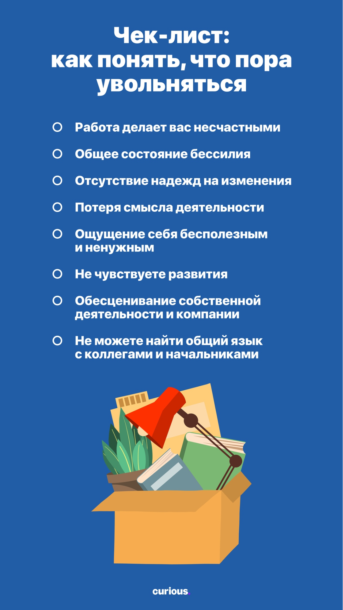 Ещё один вариант — чек-листы «прочитай — соотнеси с собой». Обычно это списки признаков, по которым можно определить то или иное явление. Например, распознать манипулятора или заметить надвигающуюся депрессию.
