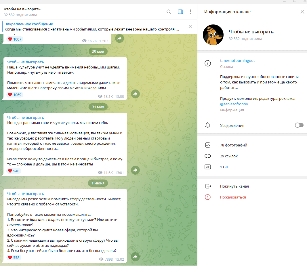 Канал выбрал нишу и формат — короткие советы, помогают не раскисать