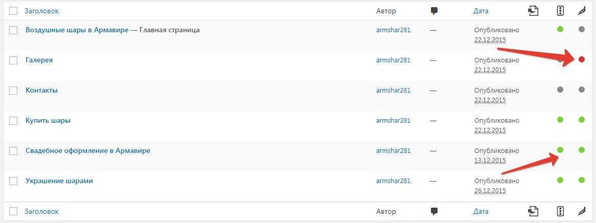 SEO-plugin Yoast интересен наличием светофора для каждой страницы или записи. Он позволяет оценить качество оптимизации. Зелёный цвет означает наличие нормальной оптимизации данной страницы. Жёлтый указывает не её недостаточность, а красный – на отсутствие SEO-оптимизации.