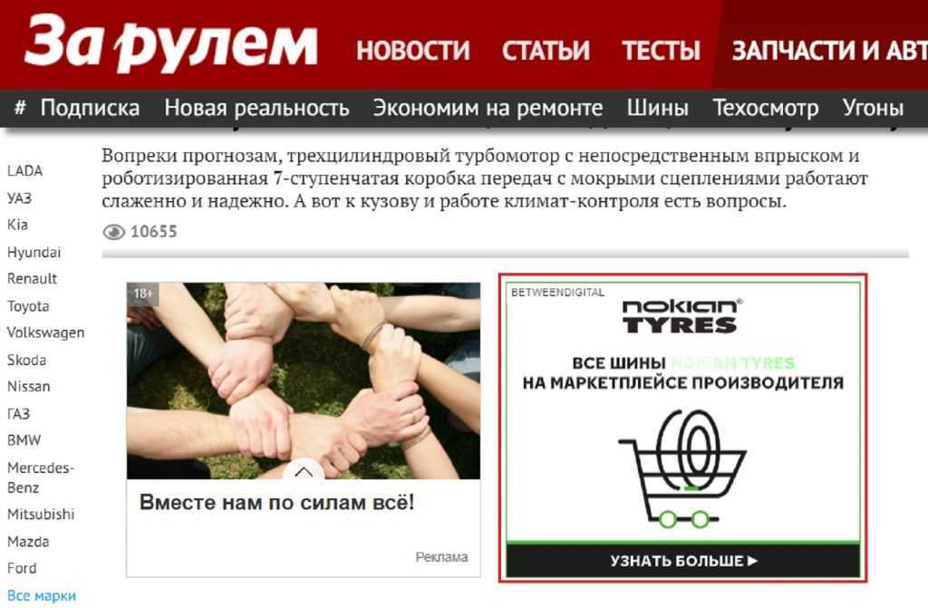 В автомобильном журнале «За рулем» продвигают шины Nokian Tyres, потому что большинство читателей, скорее всего, владеют машинами и им потенциально интересен этот продукт.