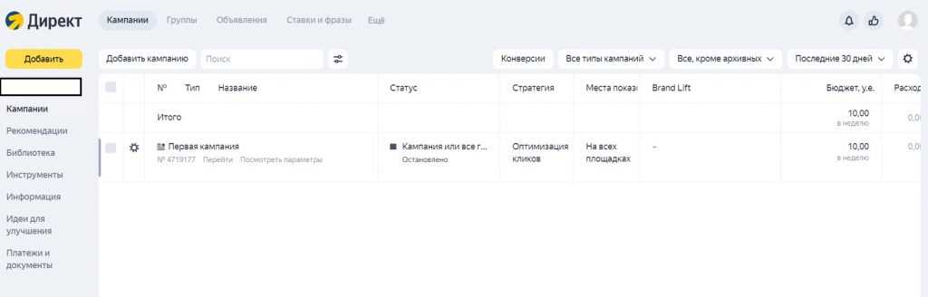 Важно, чтобы сегмент появился и стал доступен, для начала его необходимо создать в самой метрике. Сохраняем сегмент и переходим обратно в рекламный кабинет. Создаем новую кампанию по уже знакомому алгоритму