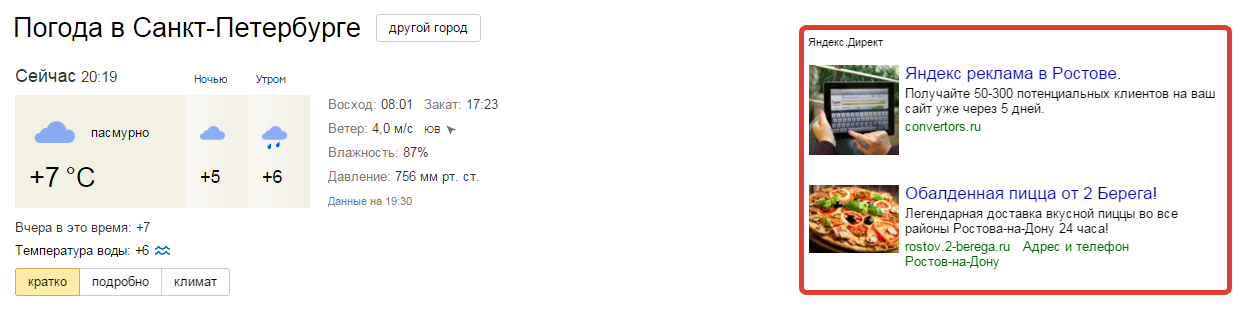 У «Яндекса» есть множество своих сервисов (погода, почта, диск, новости и т.д.), а также сайты-партнеры. Сайты-партнеры — это ресурсы, которые на своих страницах сдают в аренду места под рекламу.