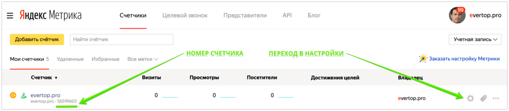 Разумеется, не забудьте предварительно установить счётчик на свой сайт, иначе ничего работать в принципе не будет.
