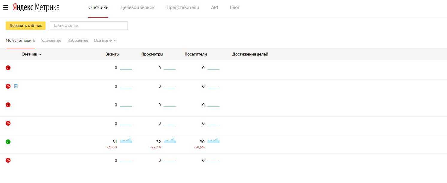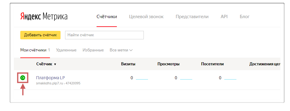 Также проверить установку счетчика Яндекс.Метрики можно на странице со списком ваших счетчиков. Если значок стал зеленым, то код установлен верно и счетчик работает. Если же значок желтый или красный, то вы допустили ошибку с установкой.
