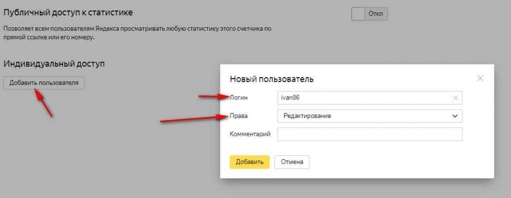 - Публичный: обычно нужен при добавлении сайта в тизерную сеть. Модератор может ознакомиться с метрикой в режиме «Только просмотр».