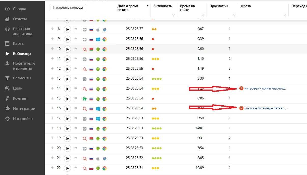 Вебвизор в Яндекс Метрике – это самая классная фишка, которую я когда-либо видела. Вебвизор -это запись каждого визита пользователя от и до. Это является уникальным методом отслеживания трафика.