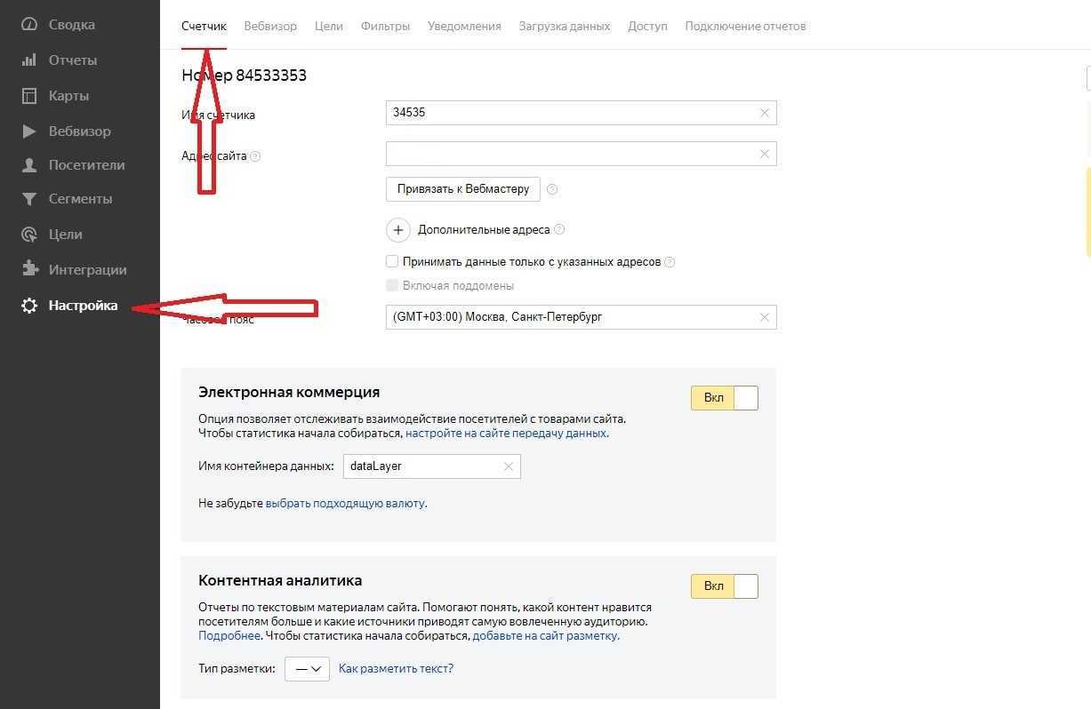 После клика по «Добавить счётчик» вас перекинет на страницу с настройками: