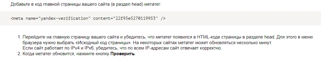 Подробнее о том, как работать в Webmaster с мета-тегом:
