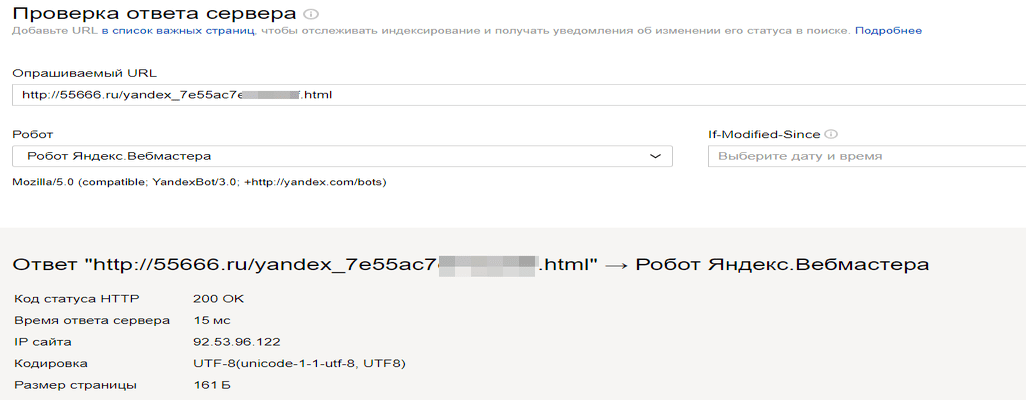 И с помощью инструмента Проверка ответа сервера вы можете проверить доступен ли ваш сайт для обхода этими роботами. Для этого в форме необходимо указать домен и выбрать из выпадающего списка робота для анализа.
