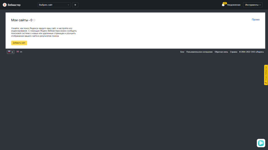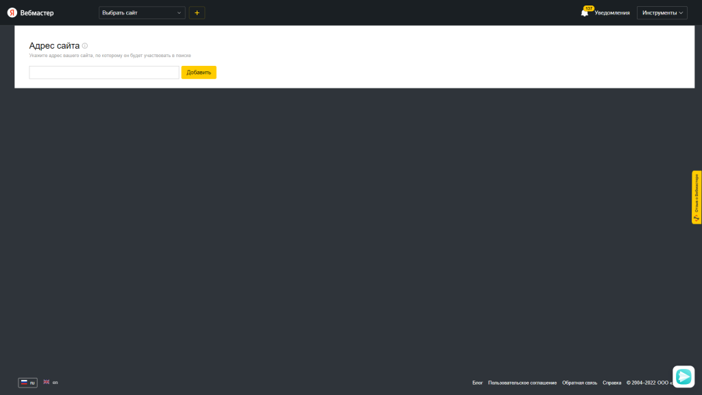 Рассмотрим, как зарегистрировать новый сайт в Yandex.Webmaster: